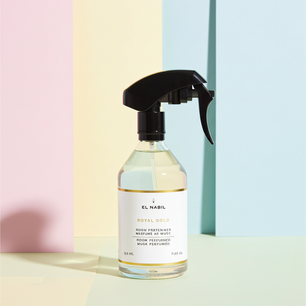 Il Royal Gold Interior Spray Ambient Perfume 350ml è un profumatore per ambienti di alta gamma del marchio El Nabil. Questa fragranza è pensata per diffondere un profumo sensuale e sofisticato in tutta la casa, sia nell'aria che sui tessuti.